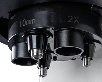 ATI B3000 is equipped with a multi-position automatic turret with 3 indenters for Brinell hardness tests and 2 optic lens for the indentation reading (20X, 40X). The turret has a 360° horizontal rotation with indenter and lens. During the Brinell test cycle, ATI B3000 is fully autonomous and motorized; just push the START button and the head performs the test cycle in automatic succession without skipping a phase and with automatic switching for a fully automatic motorized test cycle.
