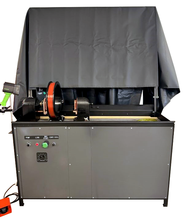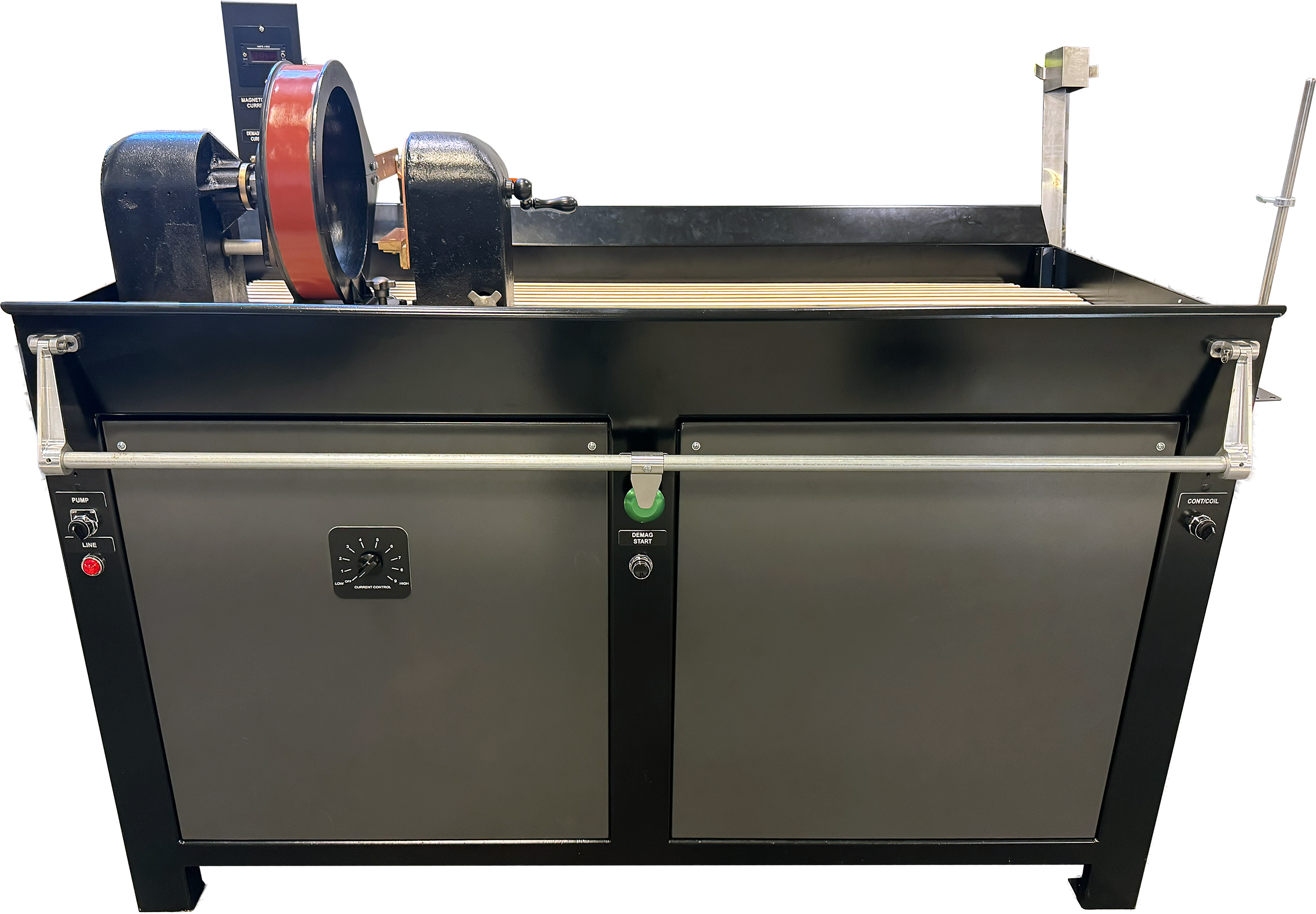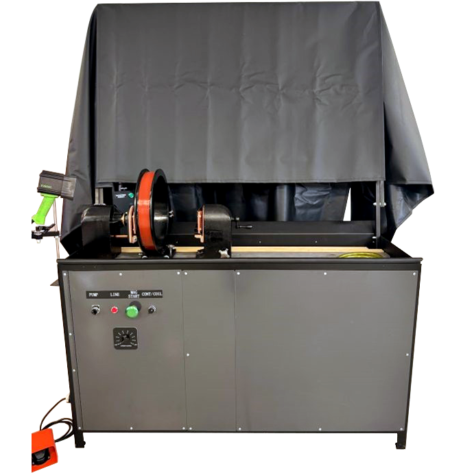 Older Magnaflux brand machines are gutted, the old power supply, pump and controls are discarded and replaced with all new, high quality, components. The frame is sand blasted and painted with epoxy paint. Mechanics are reworked.