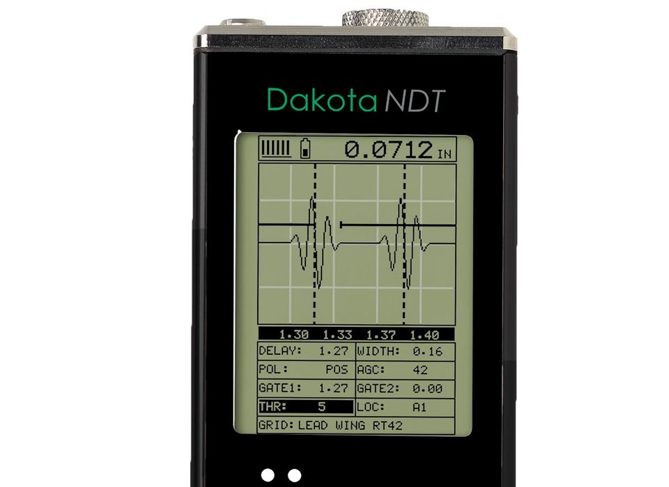 Interface-Echo Mode: Steel 0.050–1.0 in (1.27–25.4 mm); Plastics from 0.005 in (0.127 mm) Interface-Echo-Echo Mode: Steel 0.006–0.500 in (0.152–12.7 mm) Pulse-Echo Contact: Steel 0.040 in–30.0 ft (1 mm–9.1 m) Echo-Echo Contact: Steel 0.100–3.0 ft (2.54–91.4 cm) Echo-Echo Verify Contact: Steel 0.100–6.0 in (2.54–152.4 mm) |