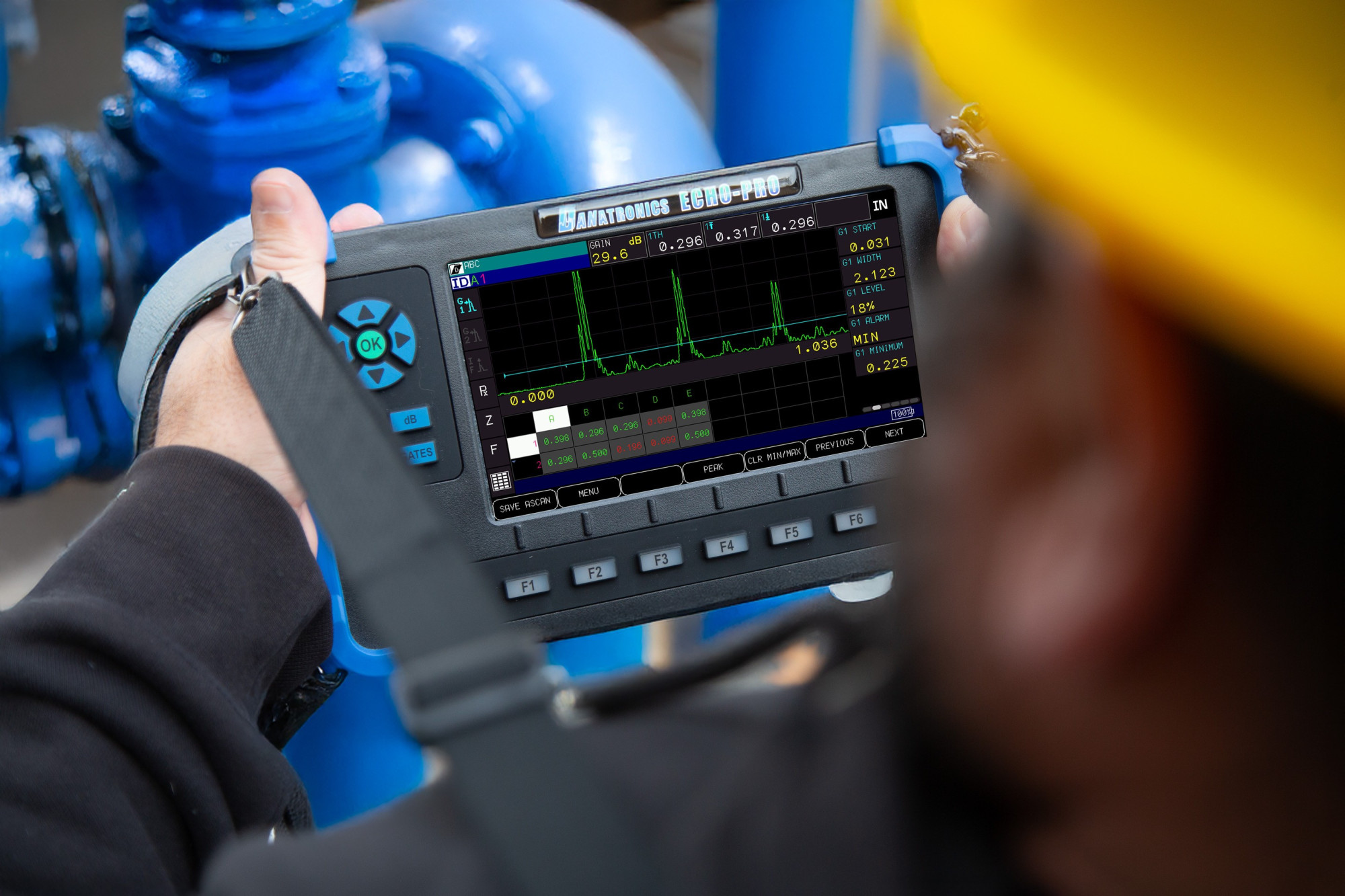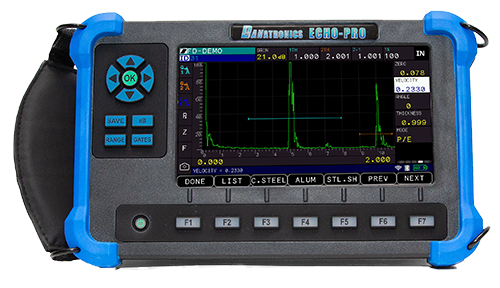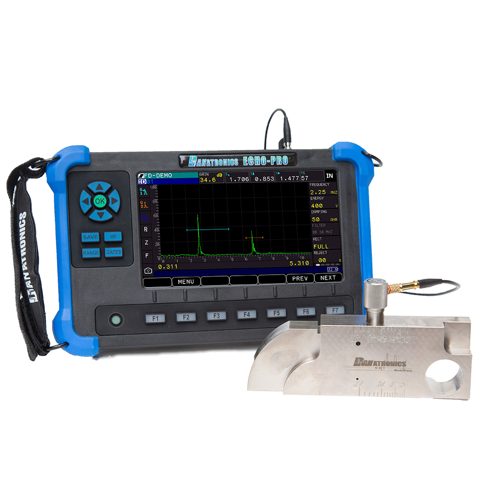 Ultrasonic precision gage (1 micron resolution) using single element probes, A and B-scan, echo to echo, datalogger |